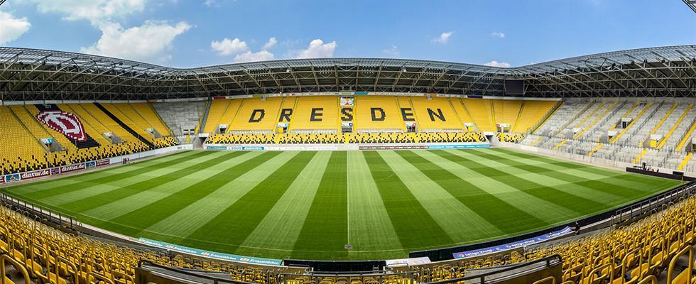 The Rudolph-Harbig Stadium is the house of Dinamo Dresden. The stadium hosts up to 32,000 spectators and has been conceived for soccer, offering a perfect view from any seat. Like all modern stadiums covering is a critical topic because it has to grant a relevant architectural trait to the sport facility and protect the spectators from weathering.