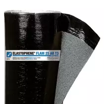 ELASTOPHENE FLAM S 70-25 is a SBS elastomeric bitumen waterproofing membrane with a composite polyester / glass reinforcement. The topside is protected by a thermofusible film and the underside is covered by fine sand.ELASTOPHENE FLAM S 70-25 is a SBS elastomeric bitumen waterproofing membrane with a composite polyes...