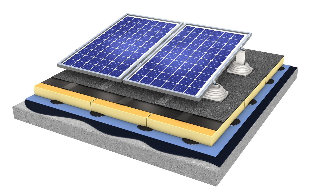 The photovoltaic solution for flat roofs with neither penetration, nor ballast with additional 10° slope.