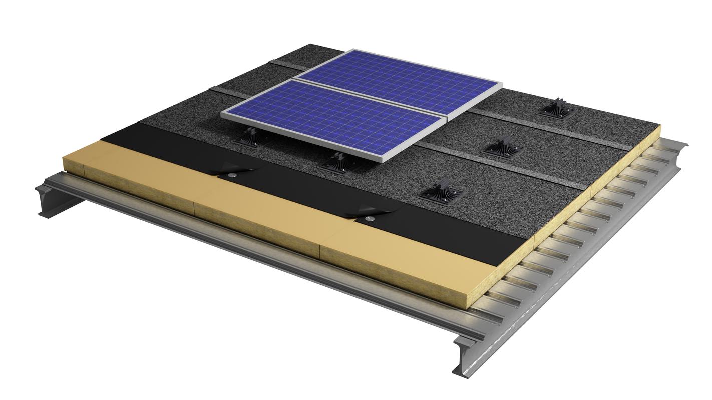 The photovoltaic solution for flat roofs with neither penetration, nor ballast.
