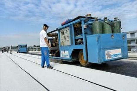 The MACADEN® is a machine for laying bituminous membranes, operated by SOPREMA for more than 10 years, for the installation of thermofusible bituminous rolls on bridges and carparks.