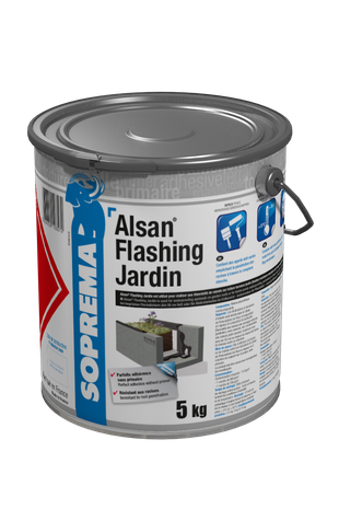 Alsan® Flashing Jardin is to be used to waterproof the upstands, in new construction work or maintenance. Alsan® Flashing Jardin is designed to replace traditional waterproofing bitumen layer. Alsan® Flashing Jardin must be applied with a brush or a roller, according to technical instructions, from 2 to 3 layers on dry and clean surface, without primer. Ensure that the product is well mixed in order to obtain a proper homogenization of components. Product cleaning: use Diluant V or L (thinners).