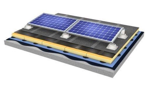 The EXTENSION 200 & EXTENSION 45 are components in the SOPRASOLAR FIX EVO TILT system (inclined rigid photovoltaic modules installed on top of a roof waterproofing membrane).